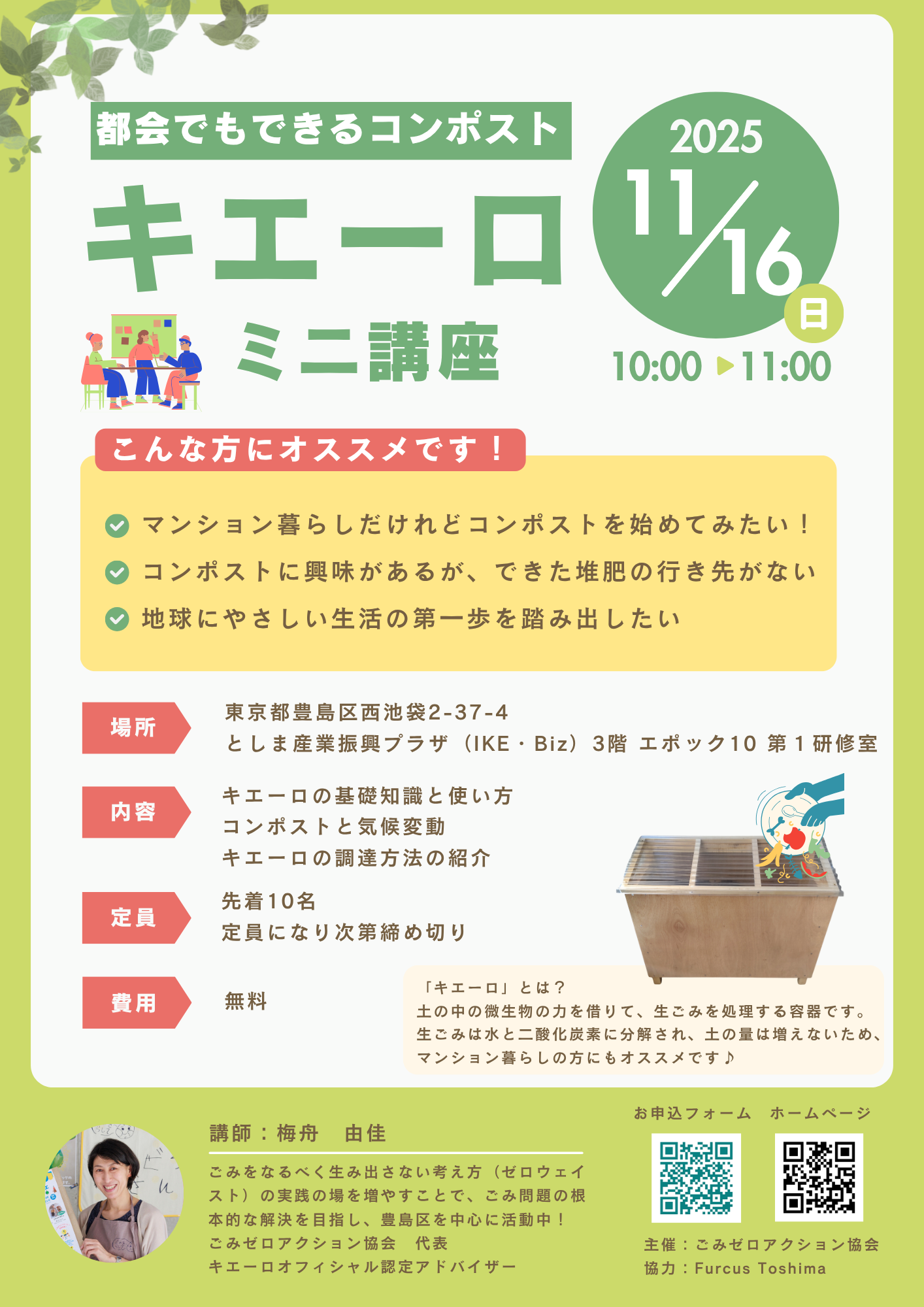 ・講師:梅舟 由佳 (ごみゼロアクション協会代表、キエーロオフィシャル認定アドバイザー)